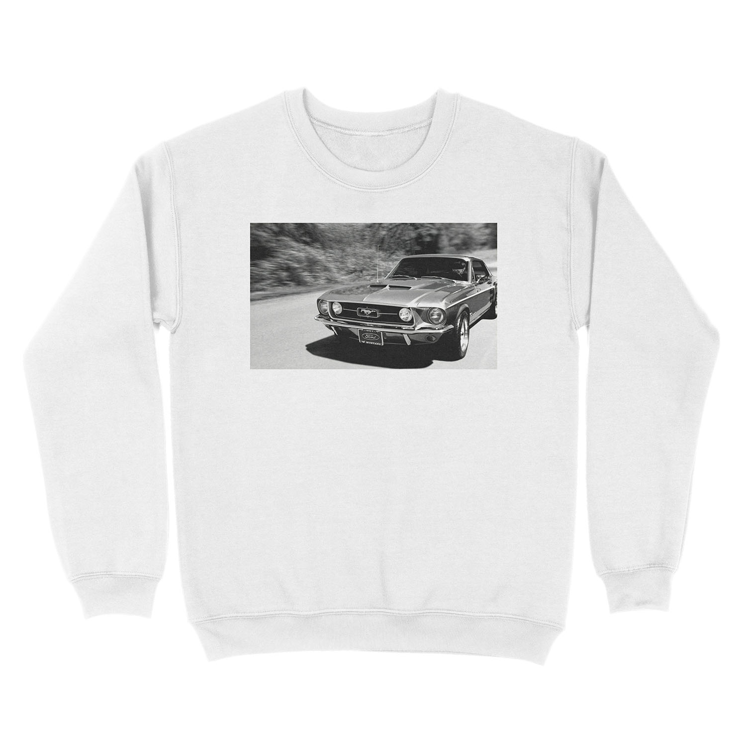 Material of 1967 Ford Mustang B/W Unisex Crewneck Sweatshirt