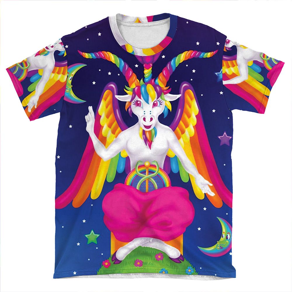 This 1997 Neon Rainbow Baphomet AOP T-shirt Tee created to be a versatile and stylish companion for all your casual appearances. With its uniquely textured, thick, microfiber-knit fabric, this t-shirt bears a premium, soft feel that remains lightweight and highly breathable – the perfect combo for a hot day or layering.