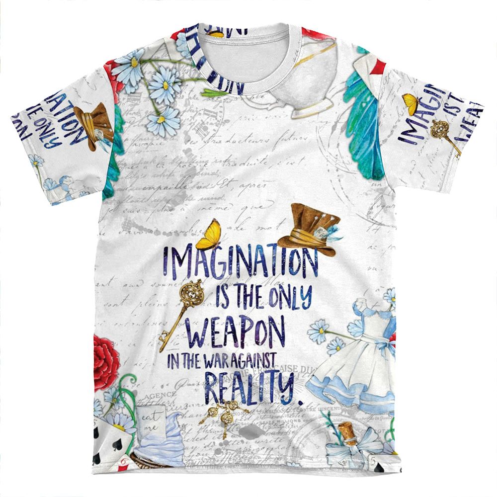 This Alice In Wonderland – Imagination AOP T-shirt Tee created to be a versatile and stylish companion for all your casual appearances. With its uniquely textured, thick, microfiber-knit fabric, this t-shirt bears a premium, soft feel that remains lightweight and highly breathable – the perfect combo for a hot day or layering.