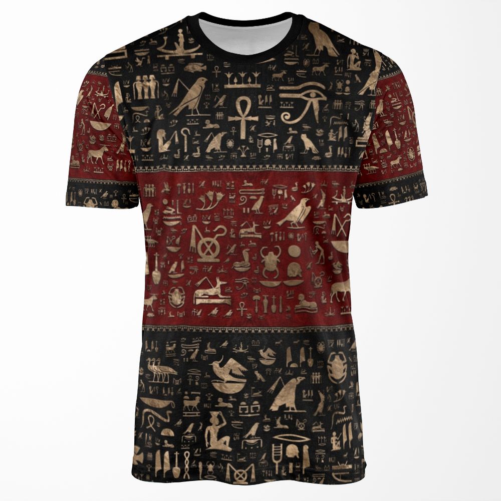 Ancient Egyptian Hieroglyphs Black And Red Leather And Gold All-over-print T-shirt