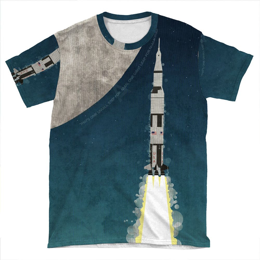 This Apollo Rocket AOP T-shirt Tee created to be a versatile and stylish companion for all your casual appearances. With its uniquely textured, thick, microfiber-knit fabric, this t-shirt bears a premium, soft feel that remains lightweight and highly breathable – the perfect combo for a hot day or layering.