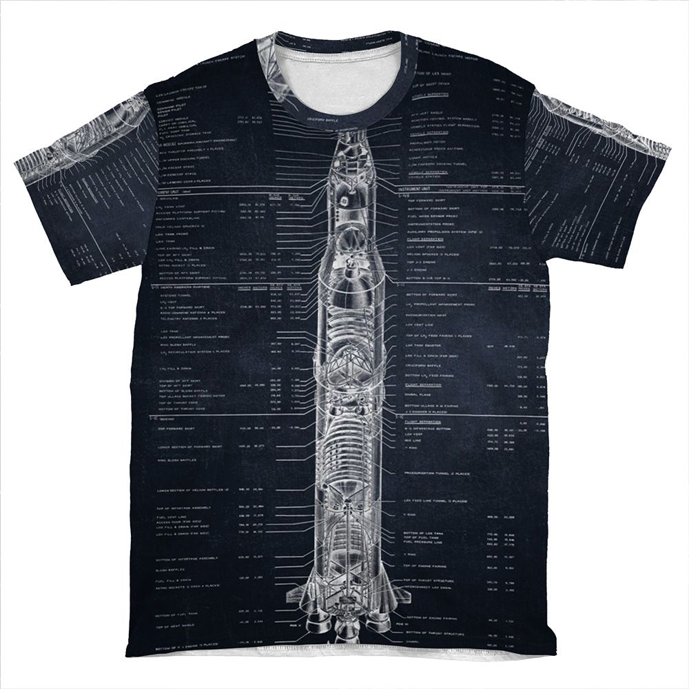 Apollo Saturn V Blueprint In High Resolution (Black) AOP T-shirt Tee