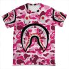 This Bape Shark Black And Pink AOP T-shirt Tee created to be a versatile and stylish companion for all your casual appearances. With its uniquely textured, thick, microfiber-knit fabric, this t-shirt bears a premium, soft feel that remains lightweight and highly breathable – the perfect combo for a hot day or layering.