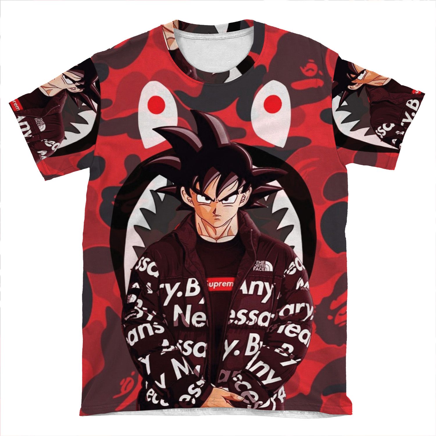 This Bape Shark Goku AOP T-shirt Tee created to be a versatile and stylish companion for all your casual appearances. With its uniquely textured, thick, microfiber-knit fabric, this t-shirt bears a premium, soft feel that remains lightweight and highly breathable – the perfect combo for a hot day or layering.
