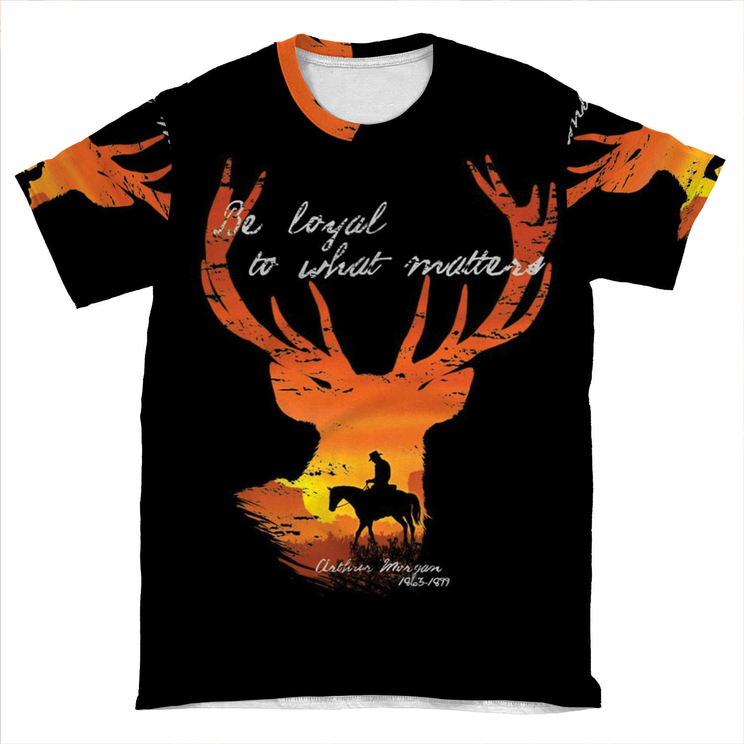 This Be Loyal To What Matters – Arthur Morgan Tribute AOP T-shirt Tee created to be a versatile and stylish companion for all your casual appearances. With its uniquely textured, thick, microfiber-knit fabric, this t-shirt bears a premium, soft feel that remains lightweight and highly breathable – the perfect combo for a hot day or layering.