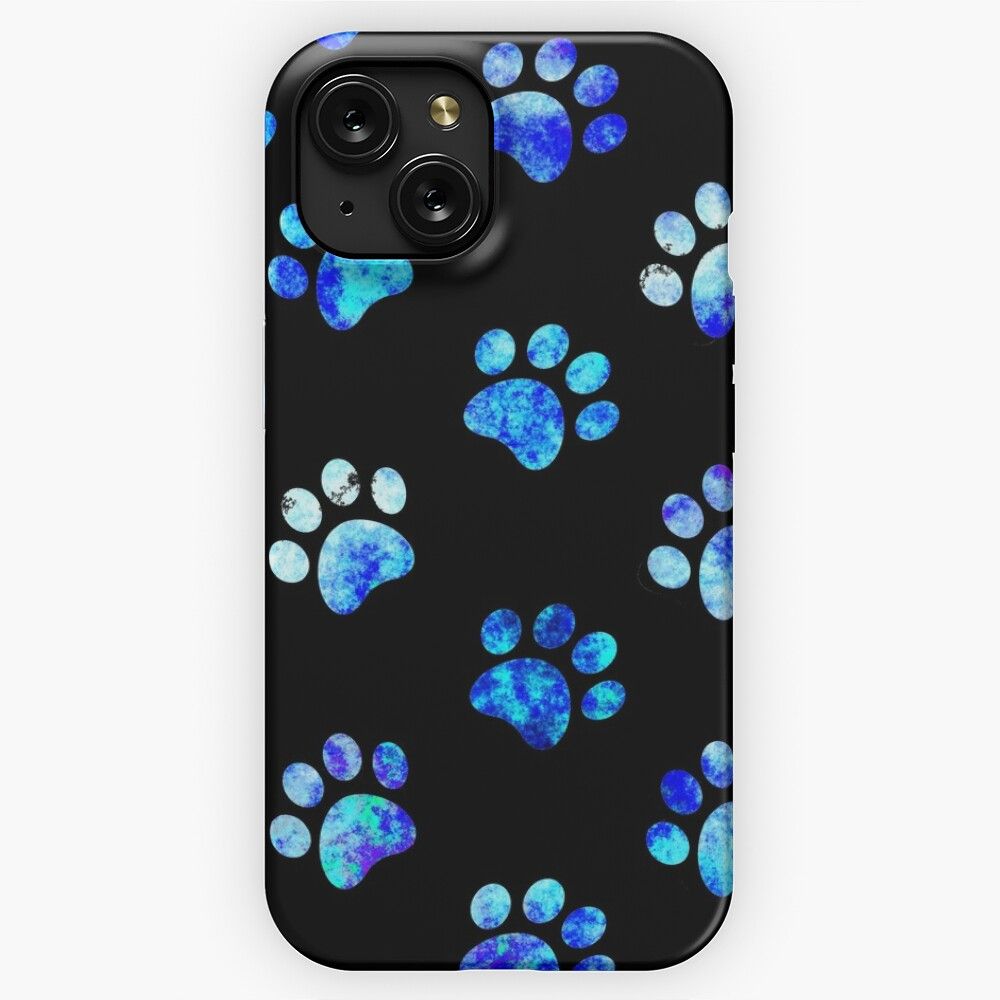 Black Blue Textured Paw Print Pattern iPhone 15 Slim Phone Case Cover