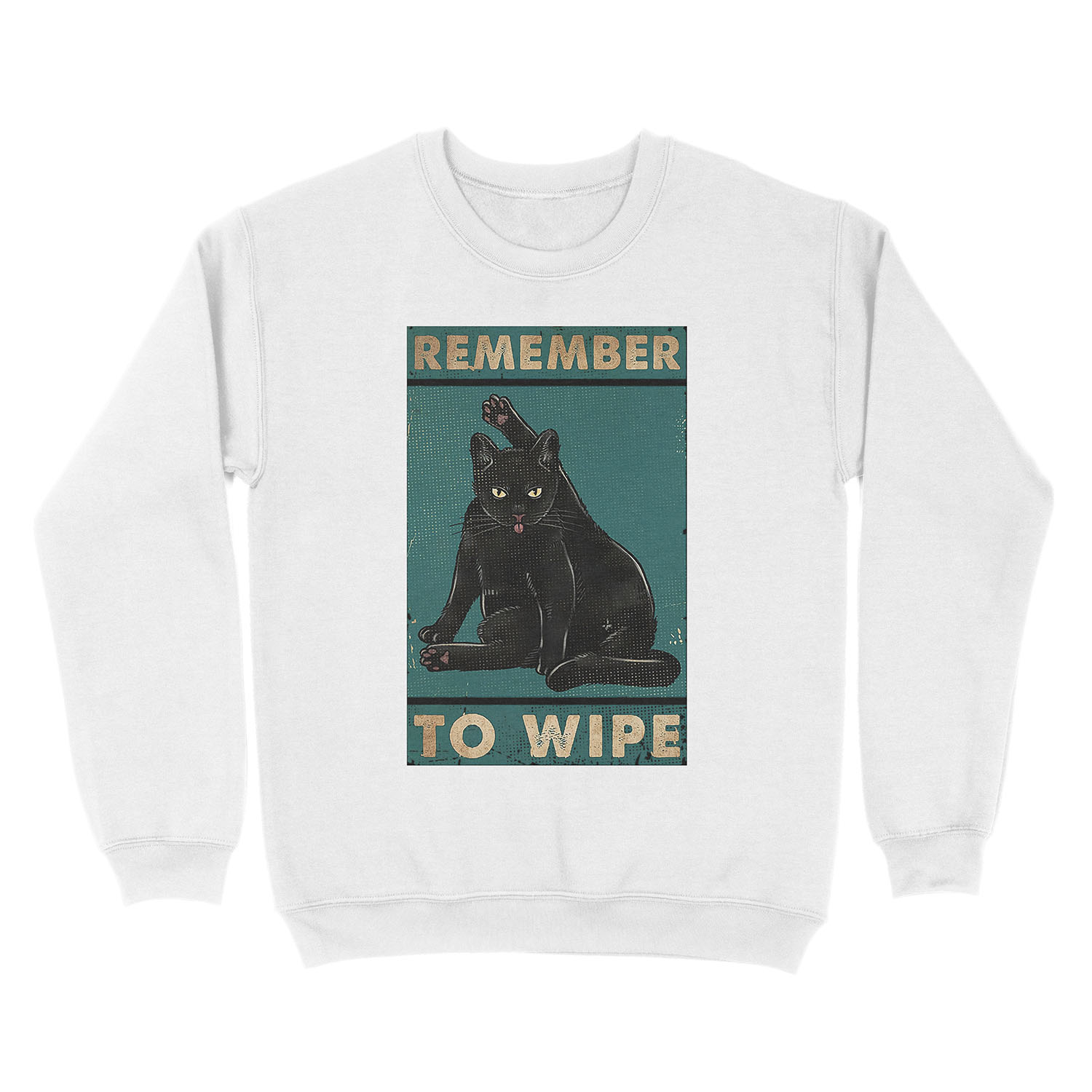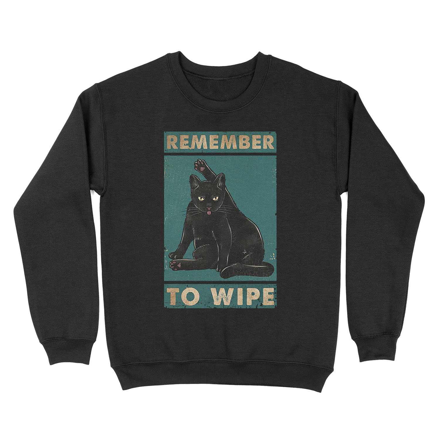 Black Cat Remember to wipe funny gift for cat lover Unisex Crewneck Sweatshirt