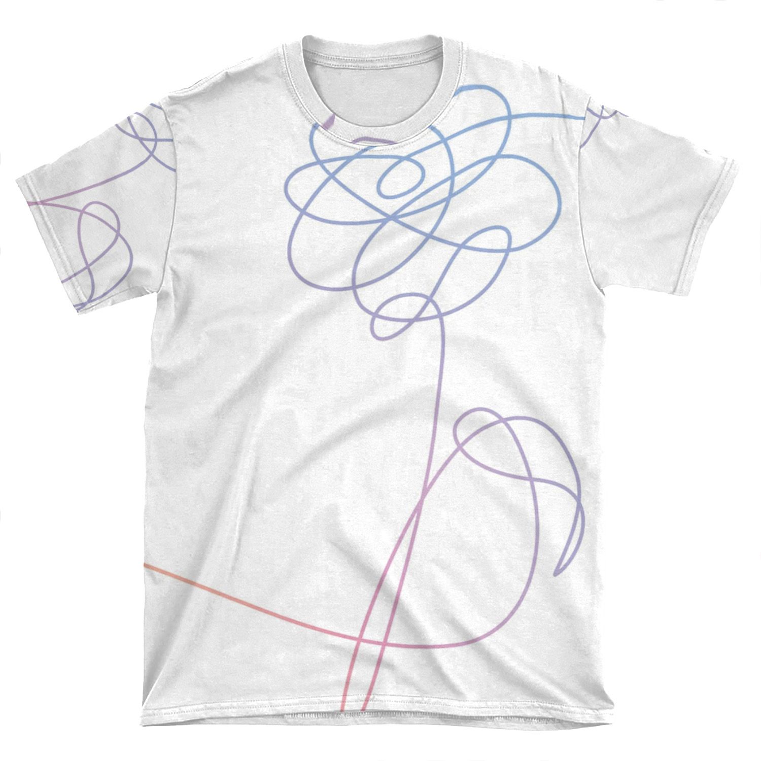 This Bts Love Yourself Flower AOP T-shirt Tee created to be a versatile and stylish companion for all your casual appearances. With its uniquely textured, thick, microfiber-knit fabric, this t-shirt bears a premium, soft feel that remains lightweight and highly breathable – the perfect combo for a hot day or layering.