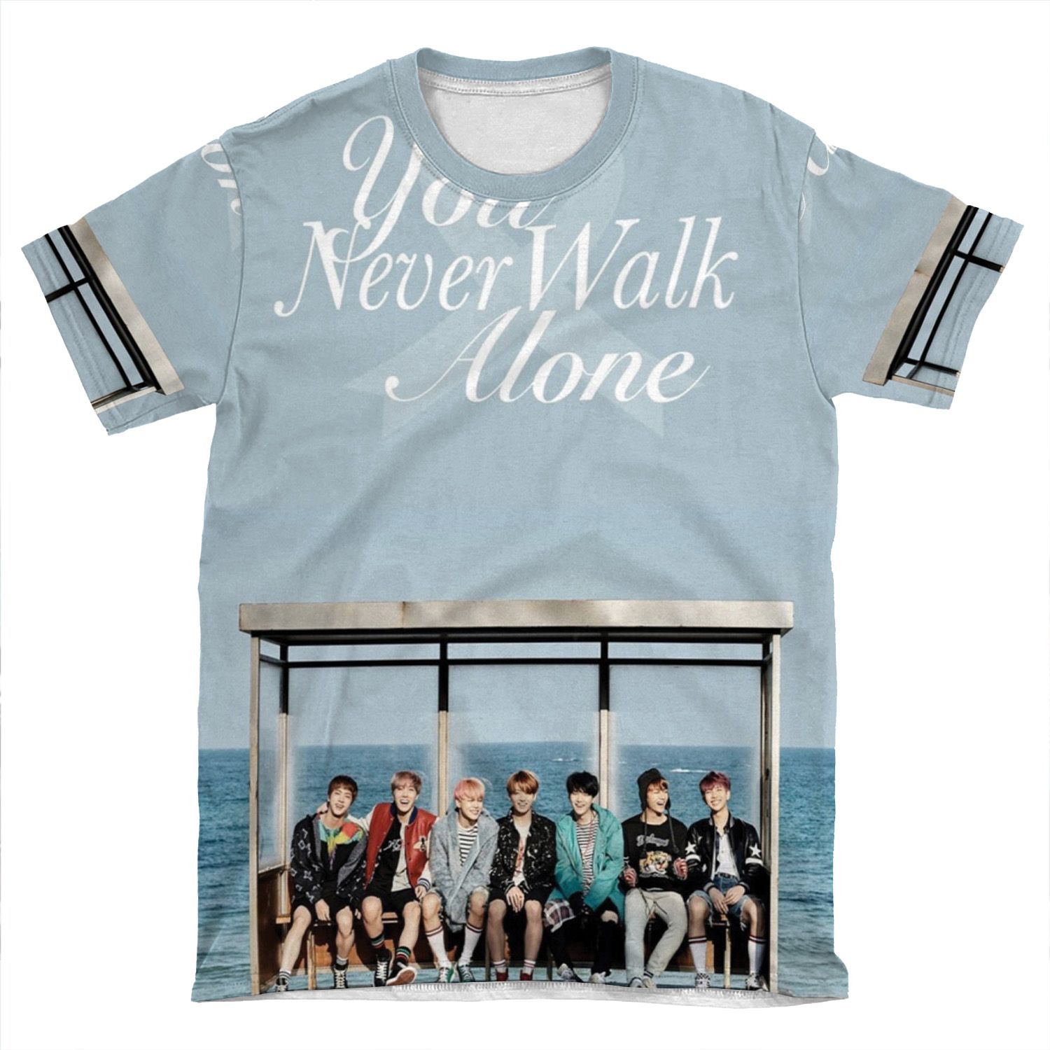 This Bts – You Never Walk Alone AOP T-shirt Tee created to be a versatile and stylish companion for all your casual appearances. With its uniquely textured, thick, microfiber-knit fabric, this t-shirt bears a premium, soft feel that remains lightweight and highly breathable – the perfect combo for a hot day or layering.