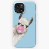 Bubble Gum Sneaky Llama In Green iPhone 15 Slim Phone Case Cover