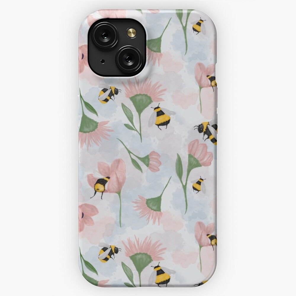 Bumble Bee Flower Pattern iPhone 15 Slim Phone Case Cover
