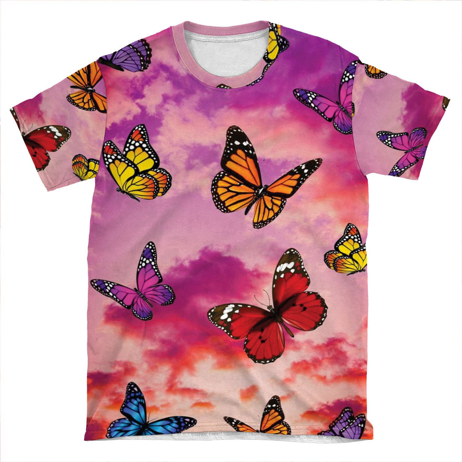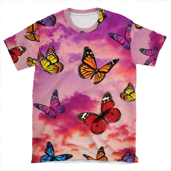 This Butterflies In Sky AOP T-shirt Tee created to be a versatile and stylish companion for all your casual appearances. With its uniquely textured, thick, microfiber-knit fabric, this t-shirt bears a premium, soft feel that remains lightweight and highly breathable – the perfect combo for a hot day or layering.