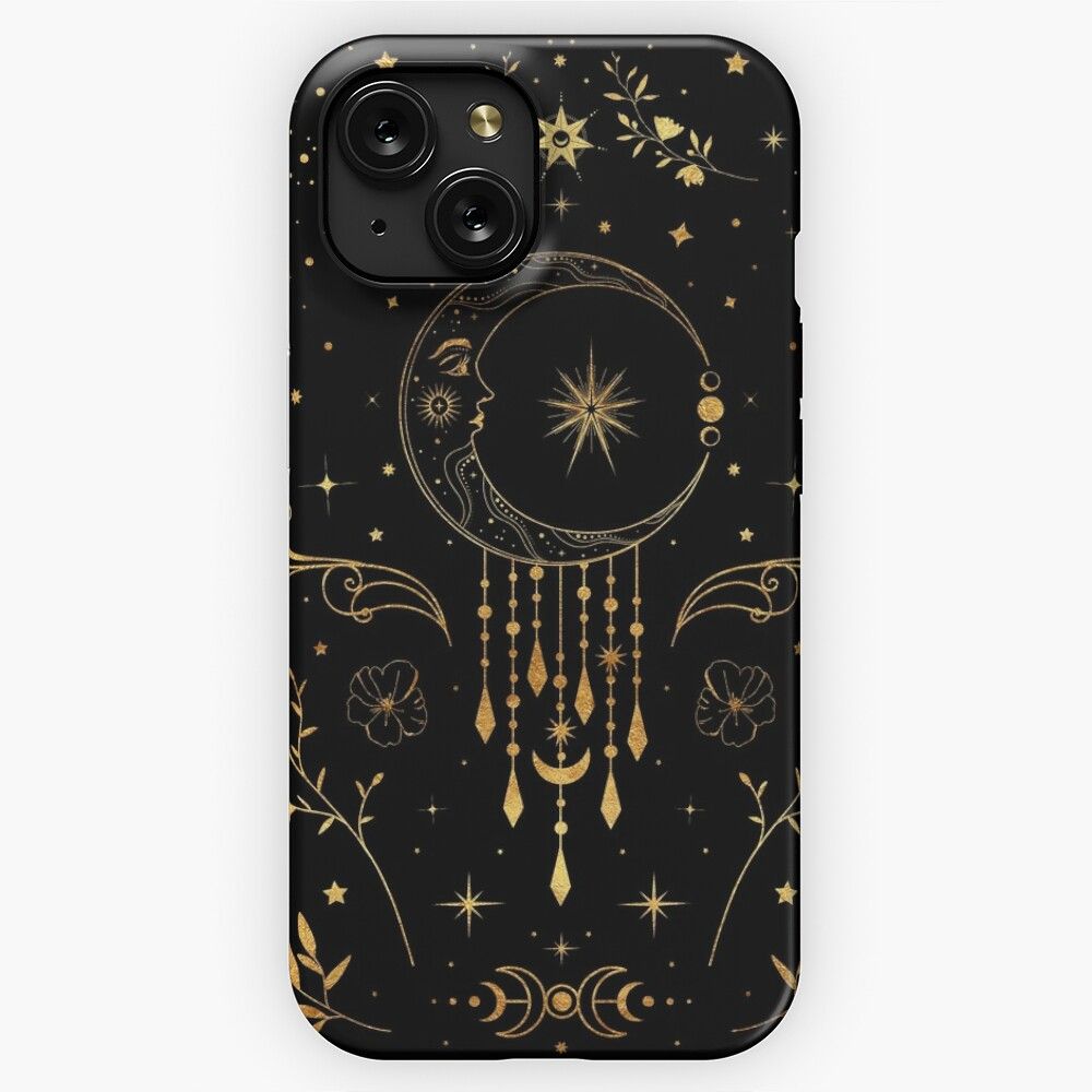 Celestial Crescent Moon With Floral Accents And Moon Phase iPhone 15 Slim Phone Case Cover