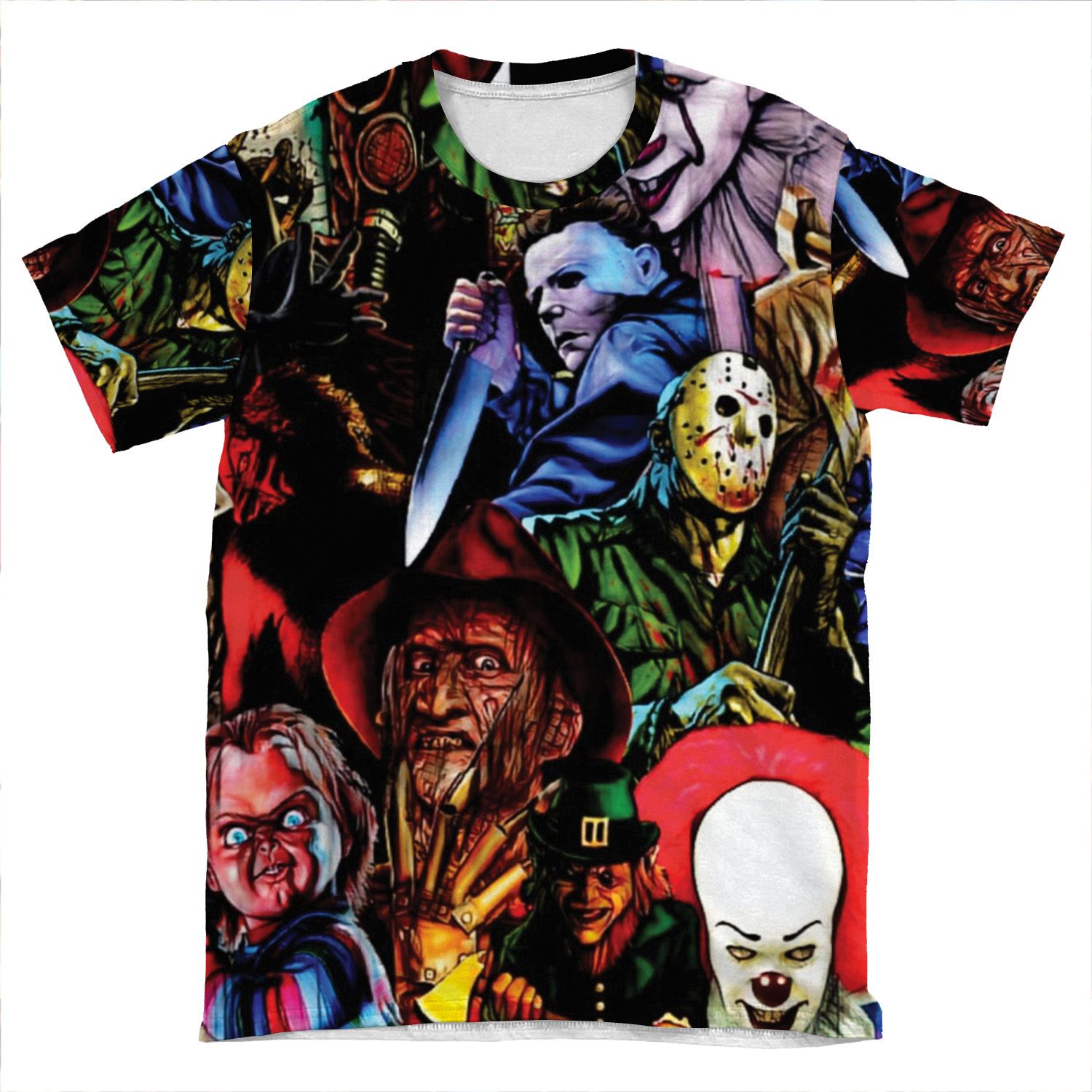 This Collage Of Horror AOP T-shirt Tee created to be a versatile and stylish companion for all your casual appearances. With its uniquely textured, thick, microfiber-knit fabric, this t-shirt bears a premium, soft feel that remains lightweight and highly breathable – the perfect combo for a hot day or layering.