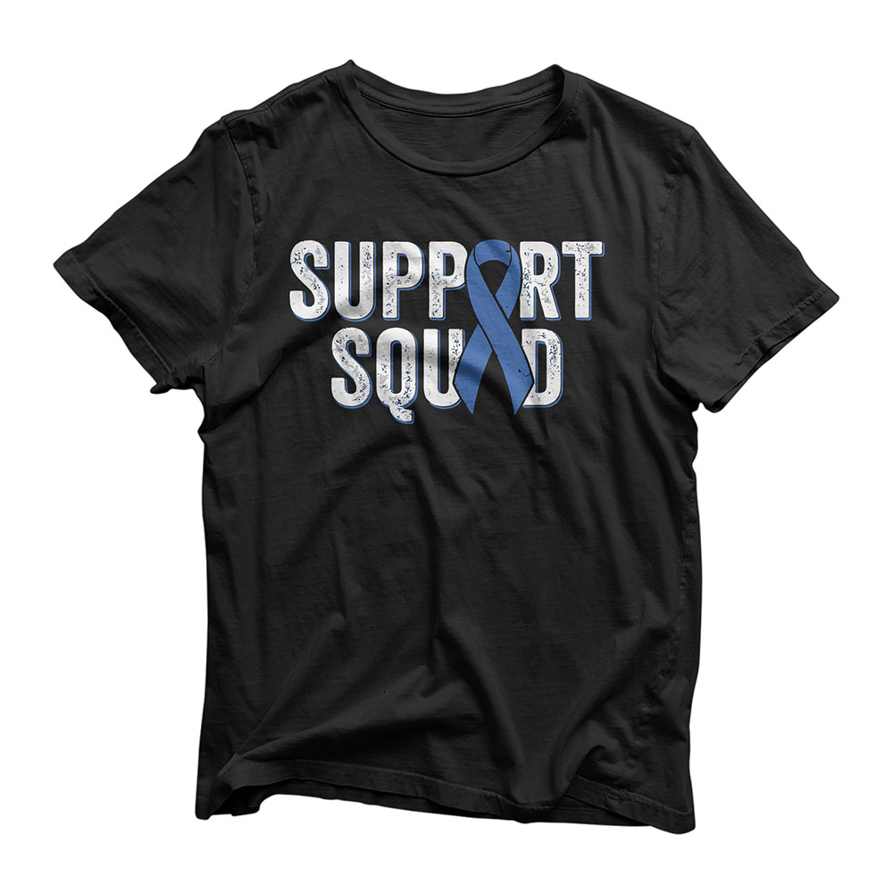 Colon Cancer Support Squad, Blue Colorectal Awareness Ribbon T-Shirt