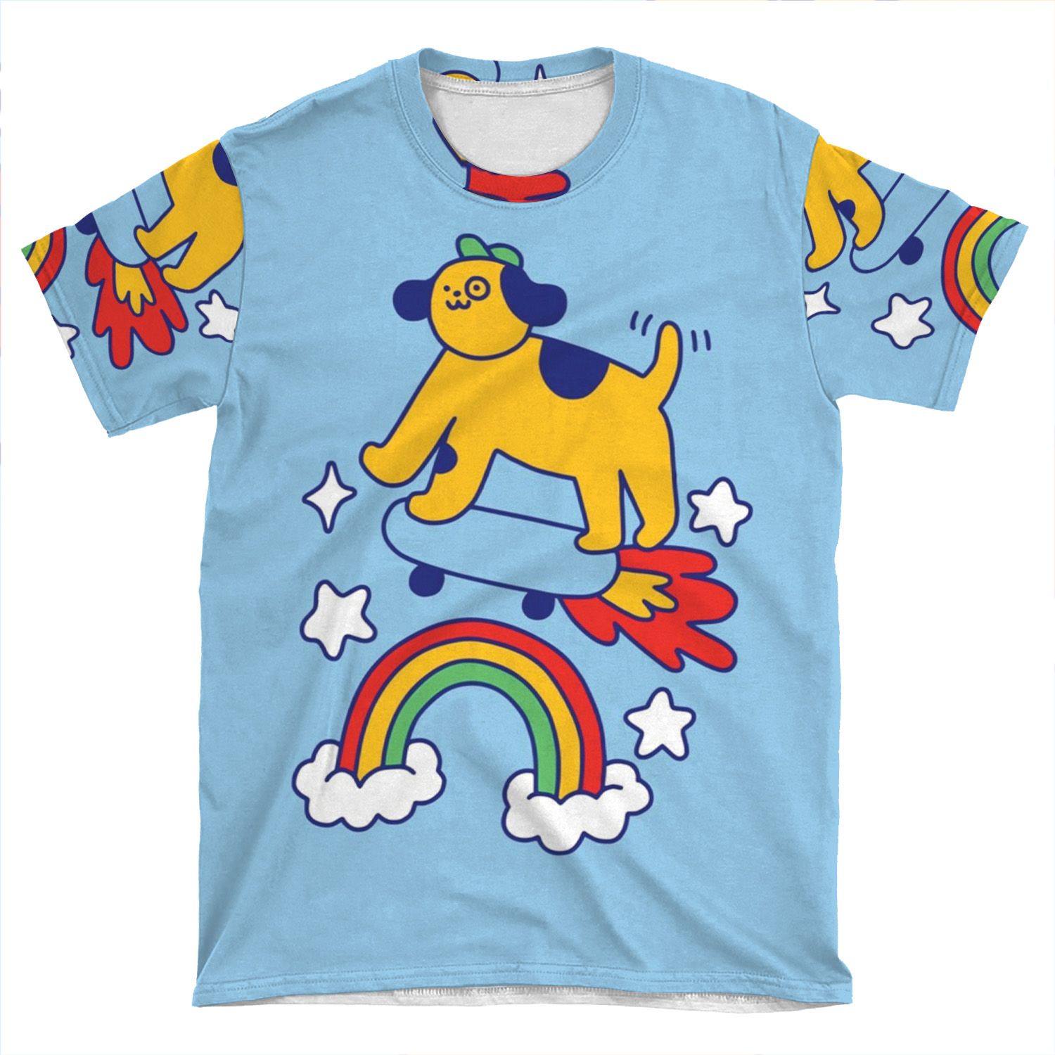 Dog Flying On A Skateboard AOP T-shirt Tee
