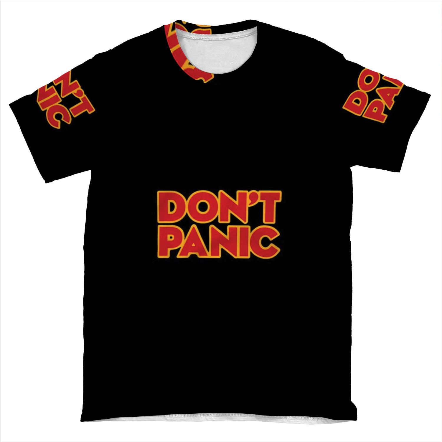 This Don’t Panic AOP T-shirt Tee created to be a versatile and stylish companion for all your casual appearances. With its uniquely textured, thick, microfiber-knit fabric, this t-shirt bears a premium, soft feel that remains lightweight and highly breathable – the perfect combo for a hot day or layering.
