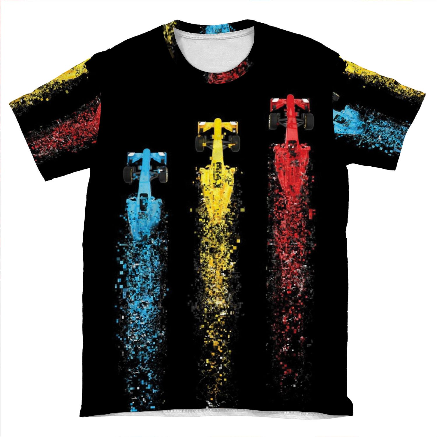 This Formula 1 Cars Racing And Disintegrating AOP T-shirt Tee created to be a versatile and stylish companion for all your casual appearances. With its uniquely textured, thick, microfiber-knit fabric, this t-shirt bears a premium, soft feel that remains lightweight and highly breathable – the perfect combo for a hot day or layering.