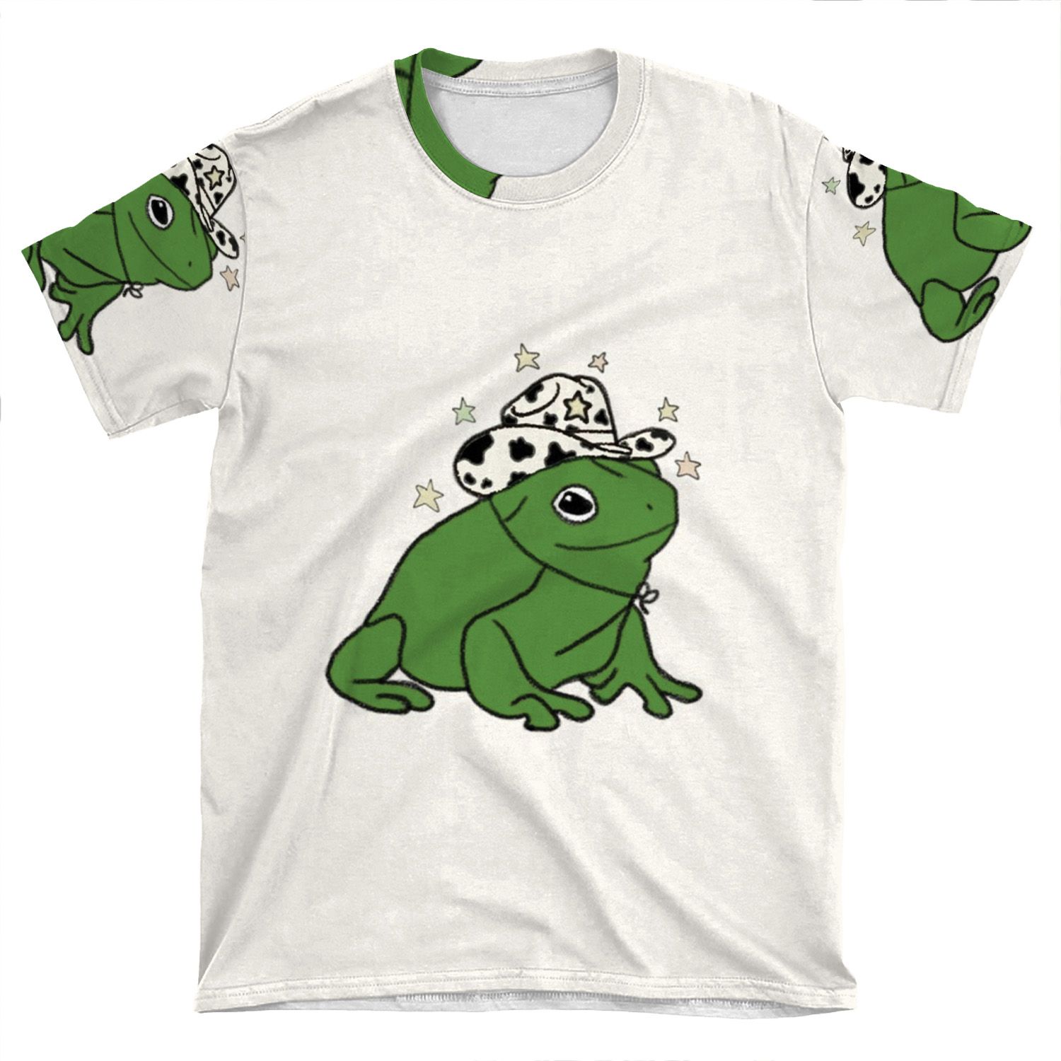 This Frog With A Cowboy Hat _ AOP T-shirt Tee created to be a versatile and stylish companion for all your casual appearances. With its uniquely textured, thick, microfiber-knit fabric, this t-shirt bears a premium, soft feel that remains lightweight and highly breathable – the perfect combo for a hot day or layering.