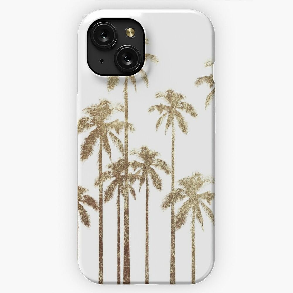 Glamorous Gold Tropical Palm Trees On White iPhone 15 Slim Phone Case Cover