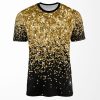 Gold Dragon In Black Egret Lotus Green Gold Floral All-over-print T-shirt