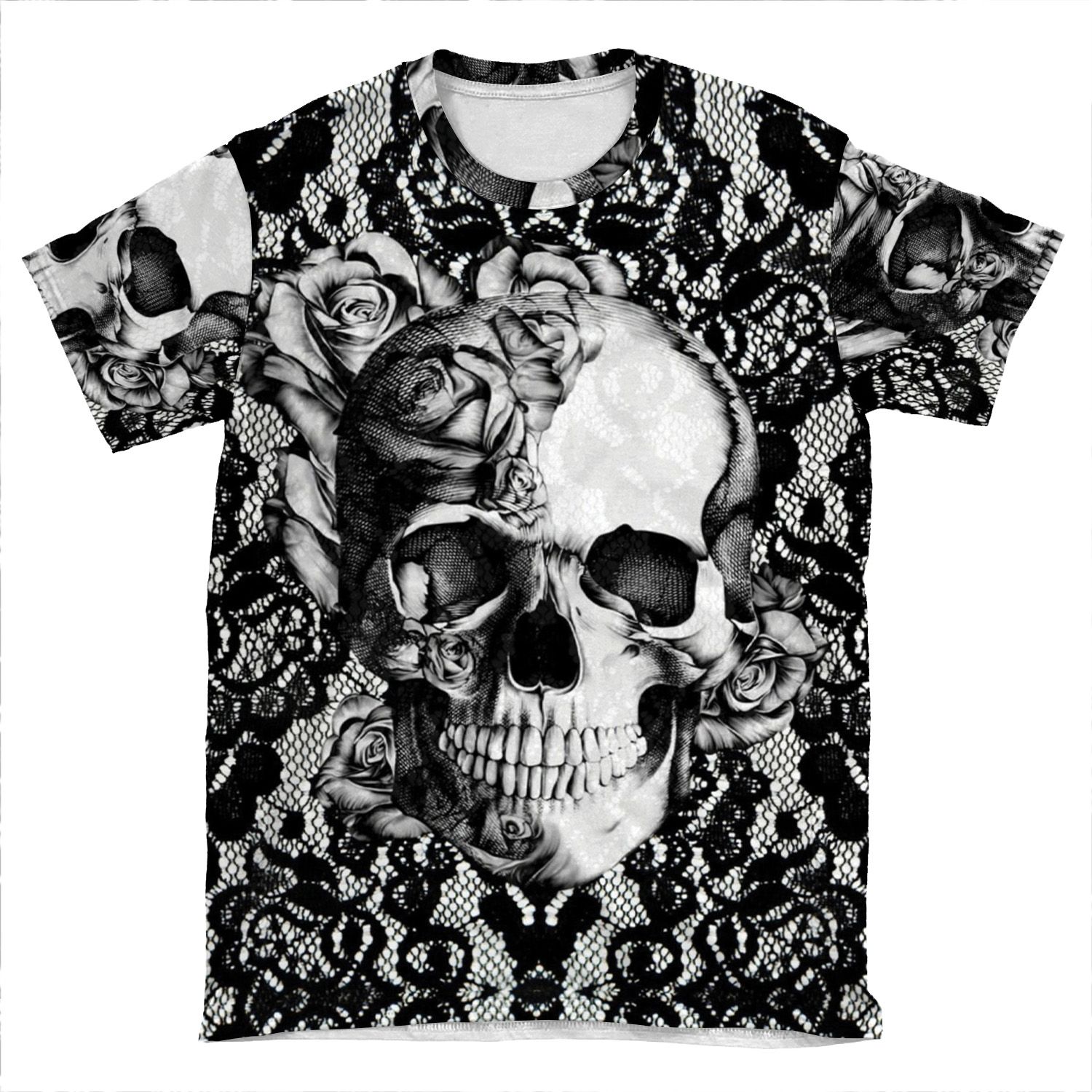 Gothic Lace Skull AOP T-shirt Tee