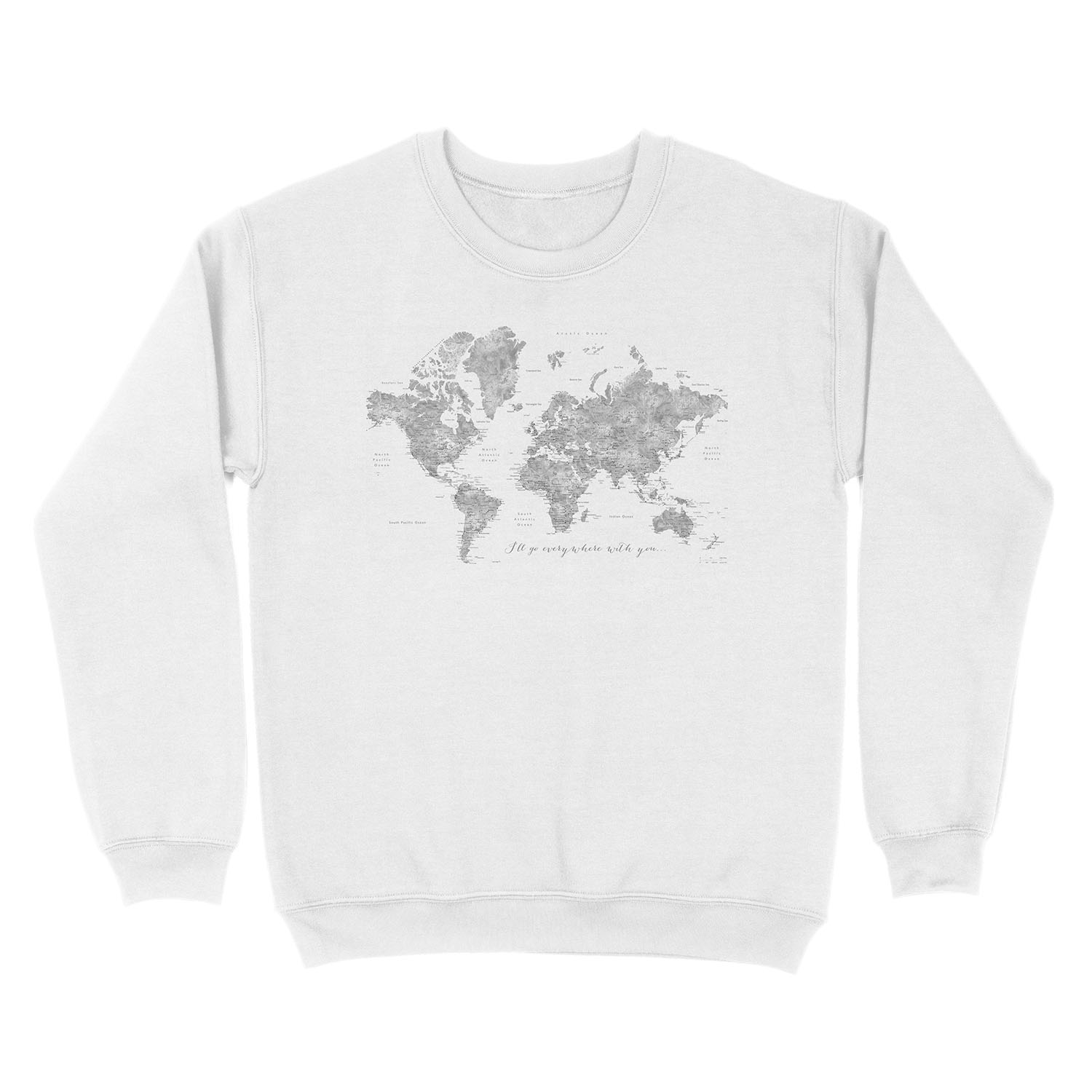 Gray watercolor detailed world map “Everywhere with you” Unisex Crewneck Sweatshirt