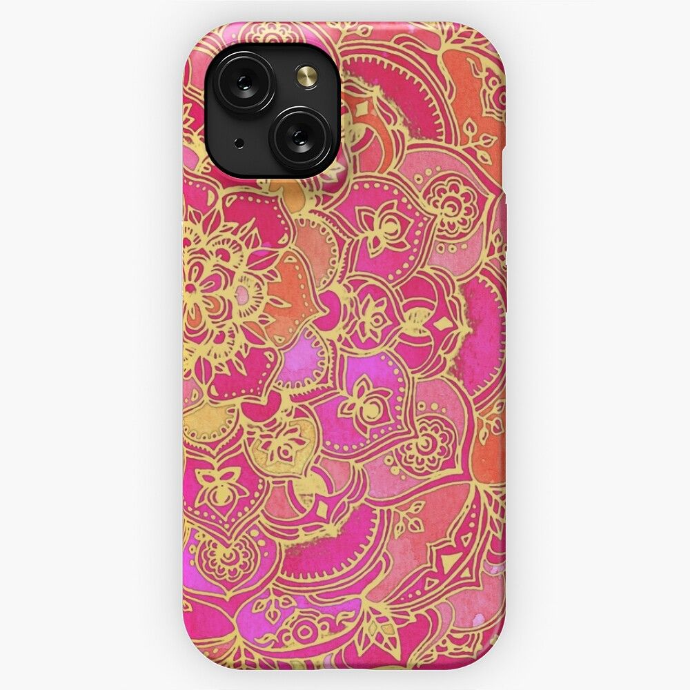 Hot Pink And Gold Baroque Floral Pattern iPhone 15 Slim Phone Case Cover