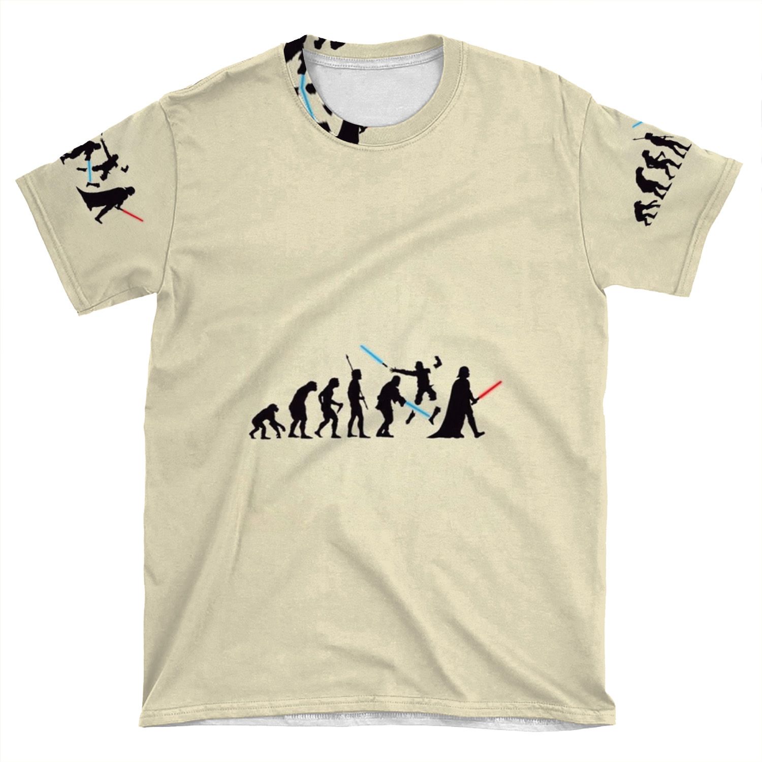 This Human Evolution Star Wars AOP T-shirt Tee created to be a versatile and stylish companion for all your casual appearances. With its uniquely textured, thick, microfiber-knit fabric, this t-shirt bears a premium, soft feel that remains lightweight and highly breathable – the perfect combo for a hot day or layering.