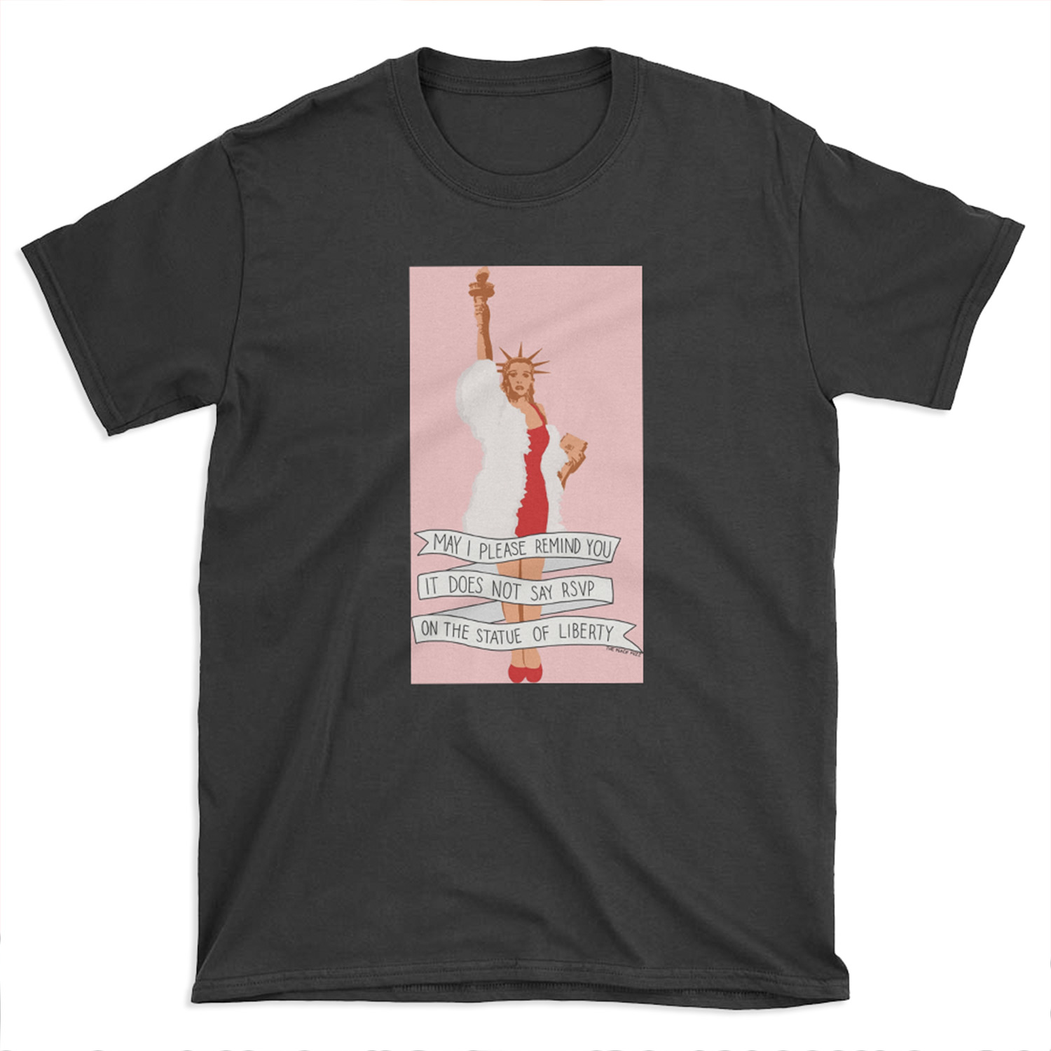 Material of It Does Not Say RSVP On The Statue Of Liberty – The Peach Fuzz T-shirt Tee