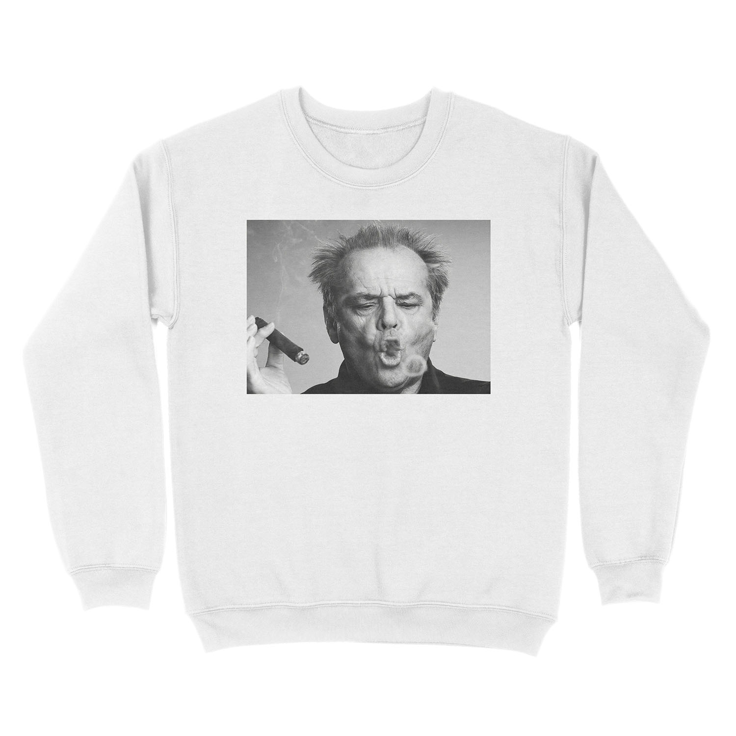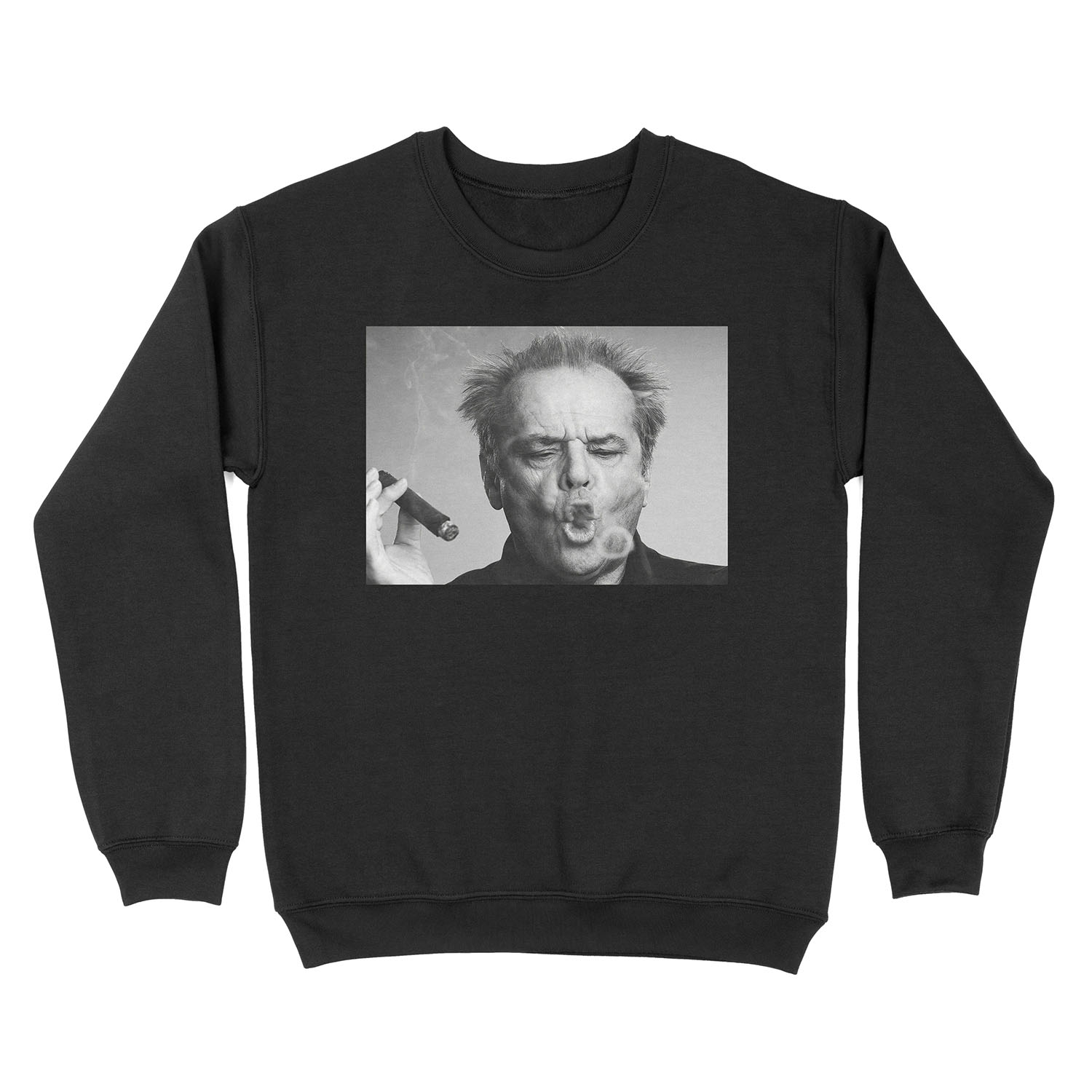 Jack Nicholson, Cigar, Smoke Rings, Black and White Photography Unisex Crewneck Sweatshirt