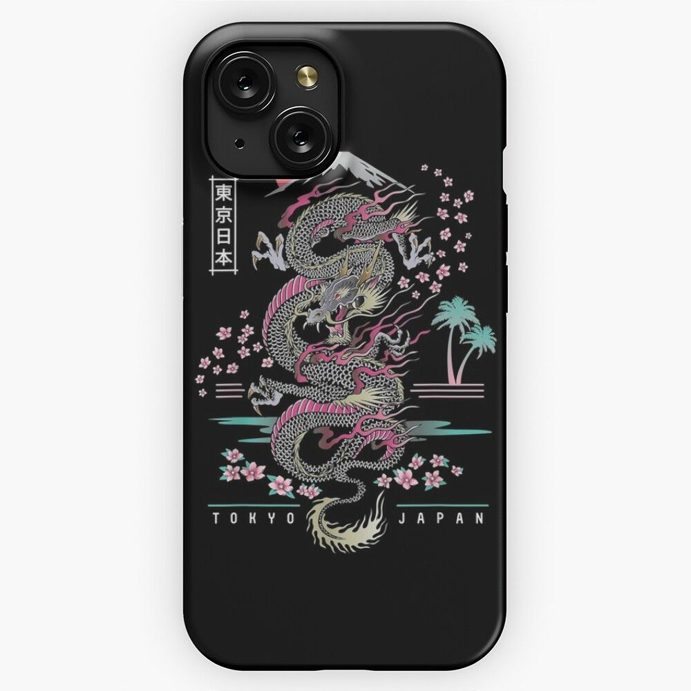 Japanese Dragon Asian Neon Retro 80S Style iPhone 15 Slim Phone Case Cover