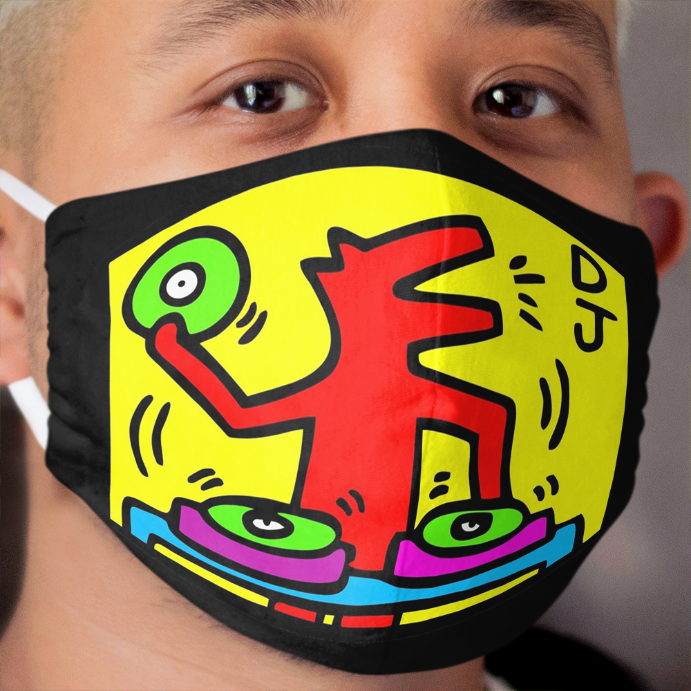 Material of Keith Haring – DJ / 1988 / Talking Heads / Abstract / Pop Art Cloth Face Mask