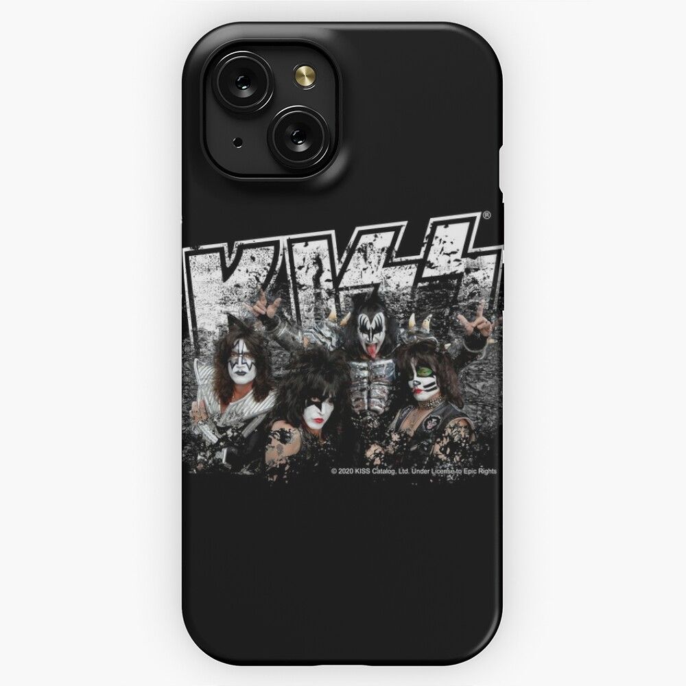 Kiss Rock Music Band Black White Effect Logo And All Membersk Music Band iPhone 15 Slim Phone Case Cover