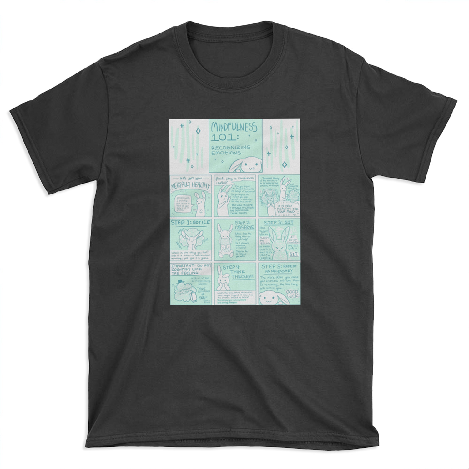 Let’s Get You Mentally Healthy: Mindfulness 101 Bunny Comic T-shirt Tee