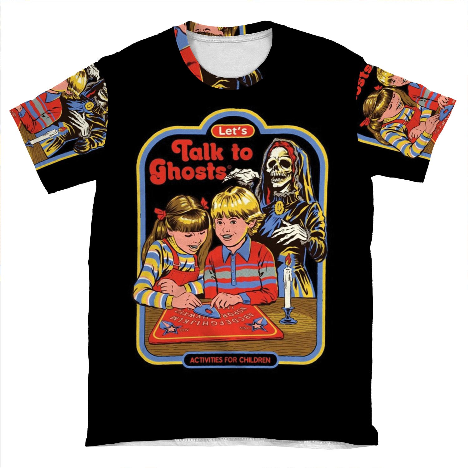 This Let’s Talk To Ghosts AOP T-shirt Tee created to be a versatile and stylish companion for all your casual appearances. With its uniquely textured, thick, microfiber-knit fabric, this t-shirt bears a premium, soft feel that remains lightweight and highly breathable – the perfect combo for a hot day or layering.