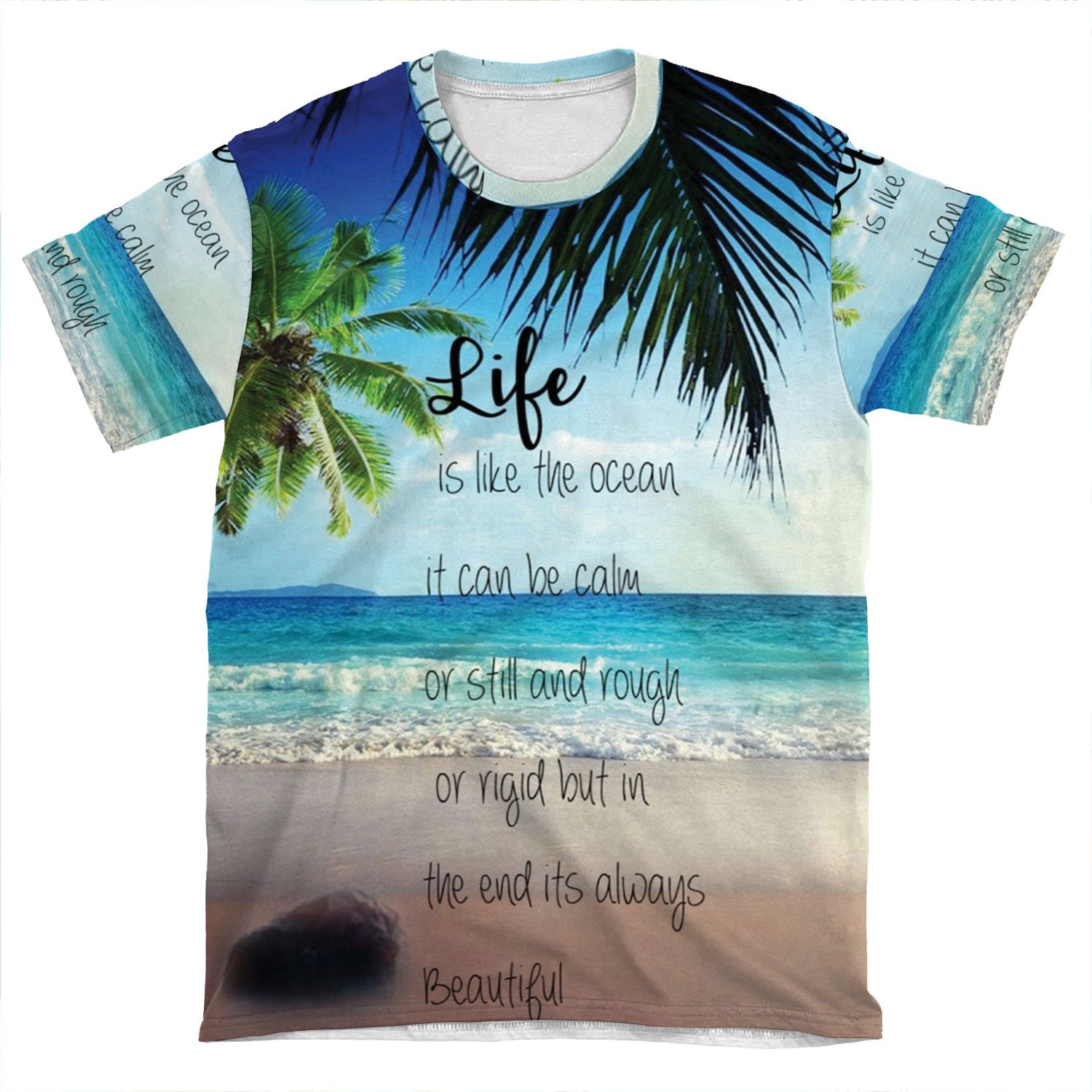 This Life Is A Beach AOP T-shirt Tee created to be a versatile and stylish companion for all your casual appearances. With its uniquely textured, thick, microfiber-knit fabric, this t-shirt bears a premium, soft feel that remains lightweight and highly breathable – the perfect combo for a hot day or layering.