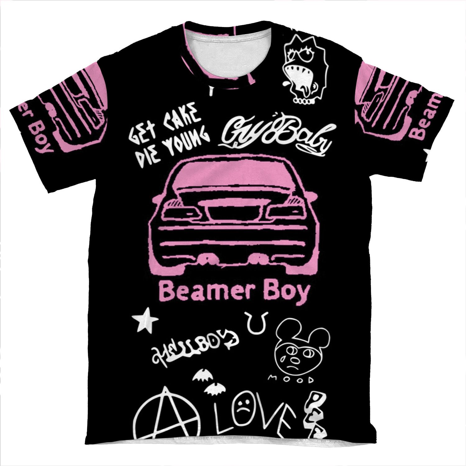 This Lil Peep Beamer Boy Tattoo Design AOP T-shirt Tee created to be a versatile and stylish companion for all your casual appearances. With its uniquely textured, thick, microfiber-knit fabric, this t-shirt bears a premium, soft feel that remains lightweight and highly breathable – the perfect combo for a hot day or layering.