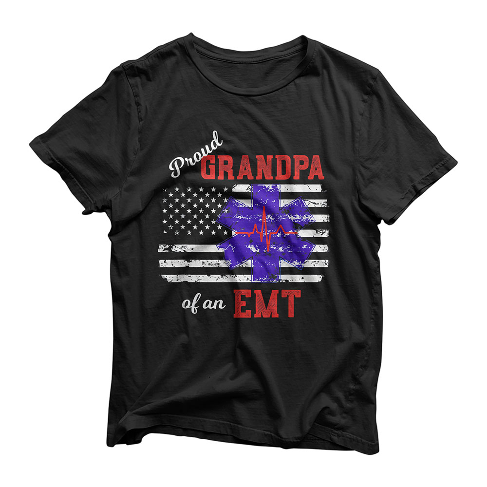 Mens Proud Grandpa of an EMT Distressed Flag Paramedic T-Shirt
