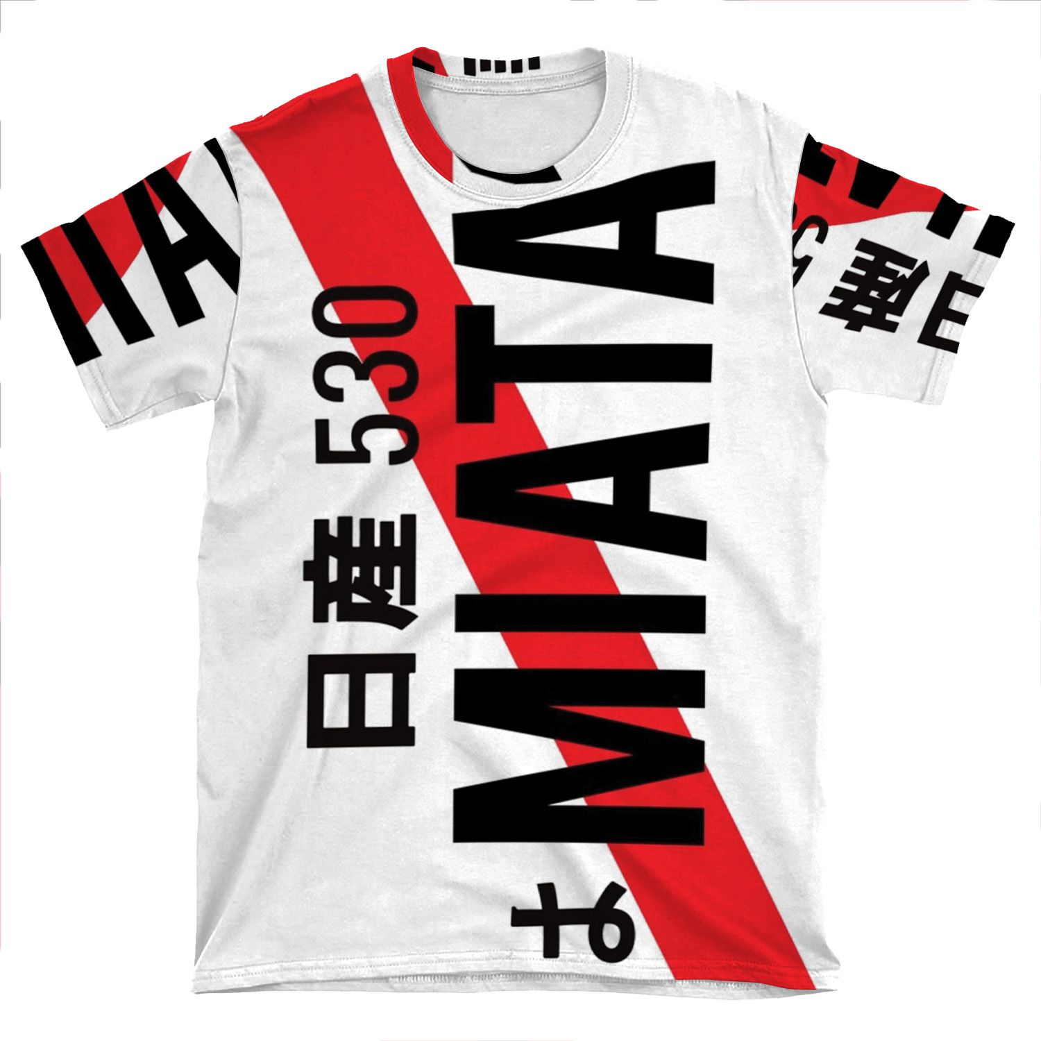 This Miata Jdm License Number Plate AOP T-shirt Tee created to be a versatile and stylish companion for all your casual appearances. With its uniquely textured, thick, microfiber-knit fabric, this t-shirt bears a premium, soft feel that remains lightweight and highly breathable – the perfect combo for a hot day or layering.