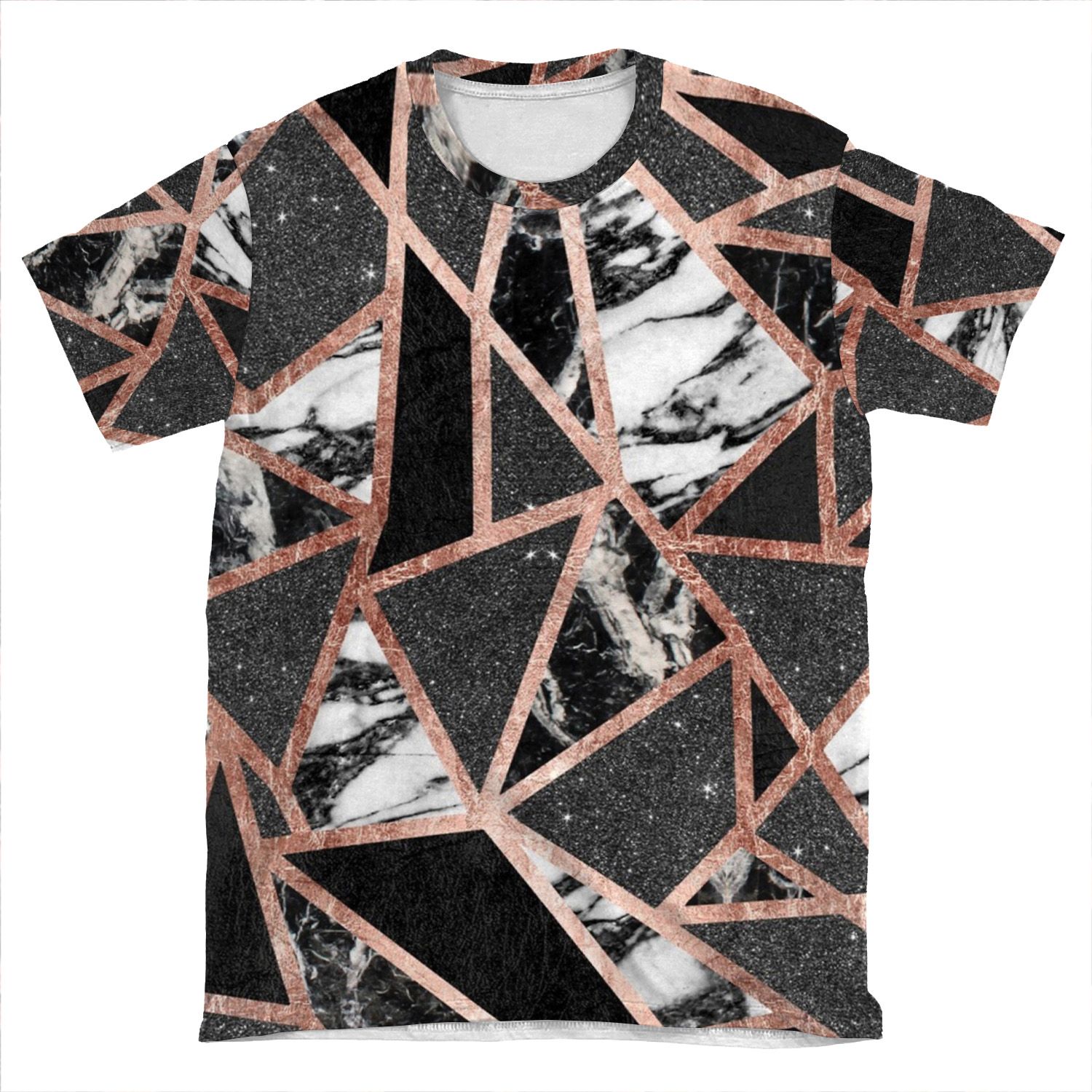 Modern Rose Gold Glitter Marble Geometric Triangle AOP T-shirt Tee