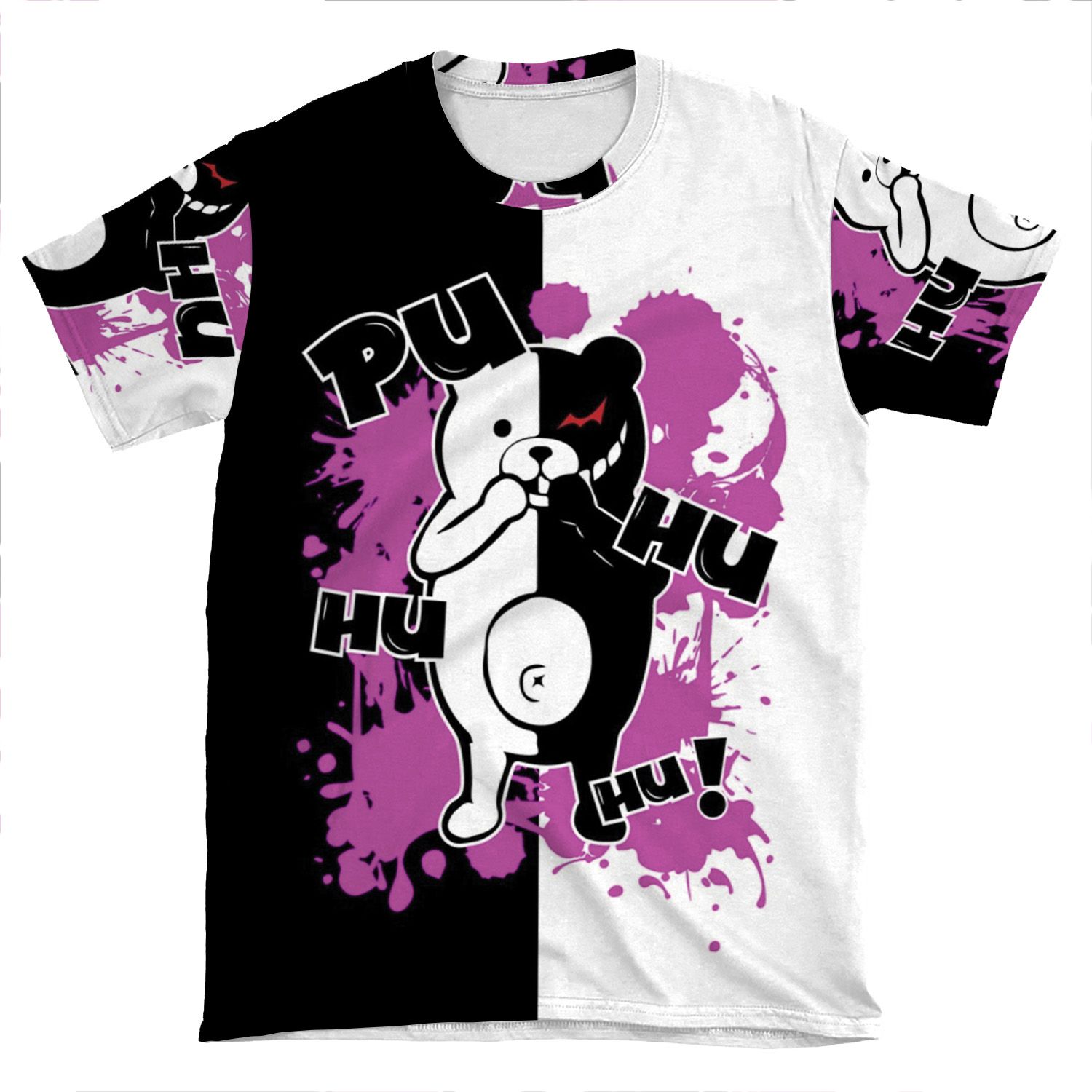 This Monokuma Danganronpa – Puhuhuhu AOP T-shirt Tee created to be a versatile and stylish companion for all your casual appearances. With its uniquely textured, thick, microfiber-knit fabric, this t-shirt bears a premium, soft feel that remains lightweight and highly breathable – the perfect combo for a hot day or layering.