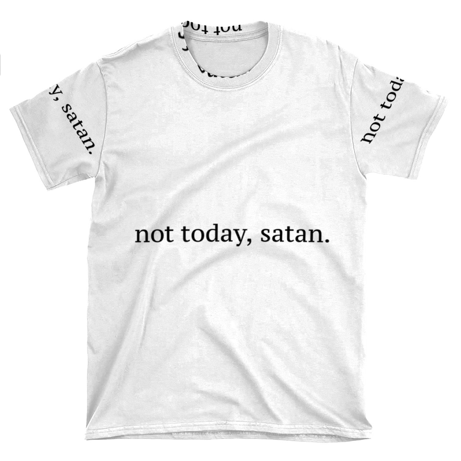 This Not Today, Satan Graphic AOP T-shirt Tee created to be a versatile and stylish companion for all your casual appearances. With its uniquely textured, thick, microfiber-knit fabric, this t-shirt bears a premium, soft feel that remains lightweight and highly breathable – the perfect combo for a hot day or layering.