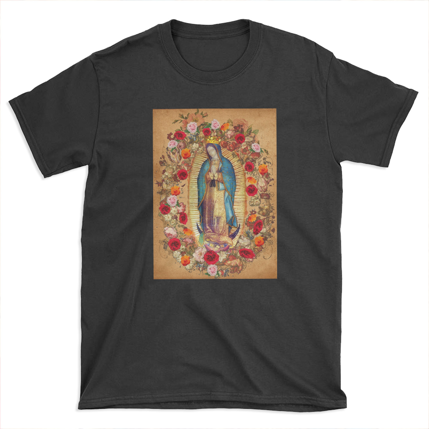 Material of Our Lady of Guadalupe Virgin Mary Catholic Mexico T-shirt Tee