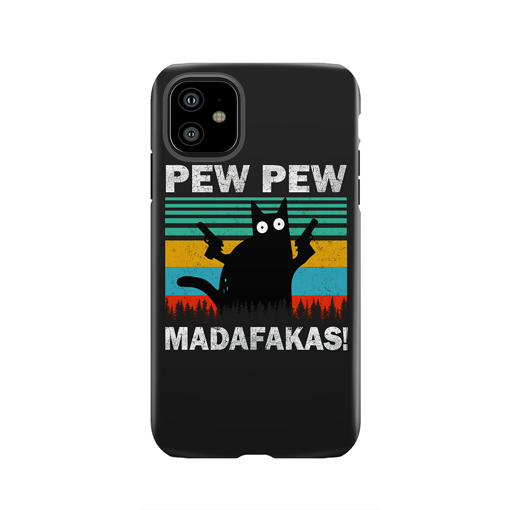 Pew Pew Madafakas Cat Crazy Vintage Funny Cat Owners Tough Phone Case