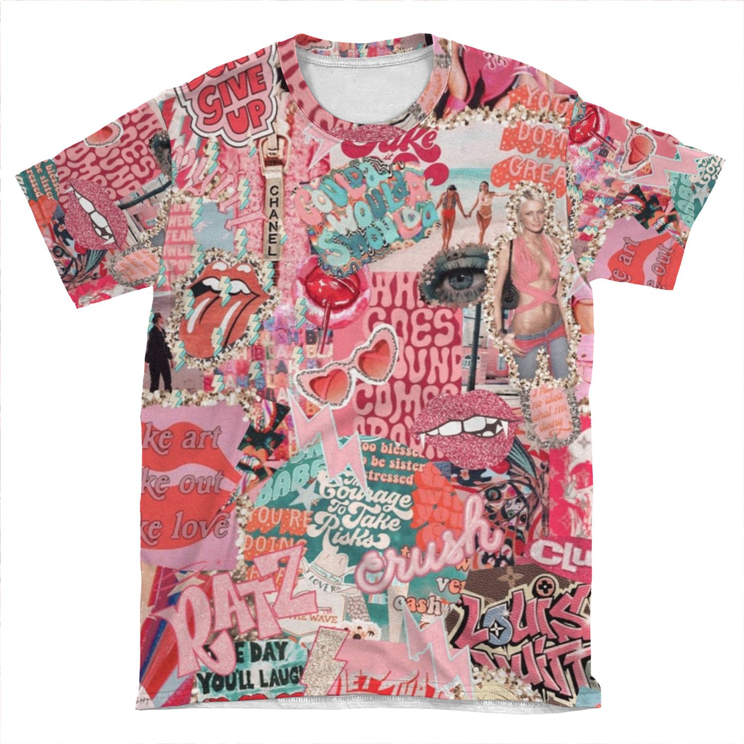 This Pink Vibez Collage AOP T-shirt Tee created to be a versatile and stylish companion for all your casual appearances. With its uniquely textured, thick, microfiber-knit fabric, this t-shirt bears a premium, soft feel that remains lightweight and highly breathable – the perfect combo for a hot day or layering.