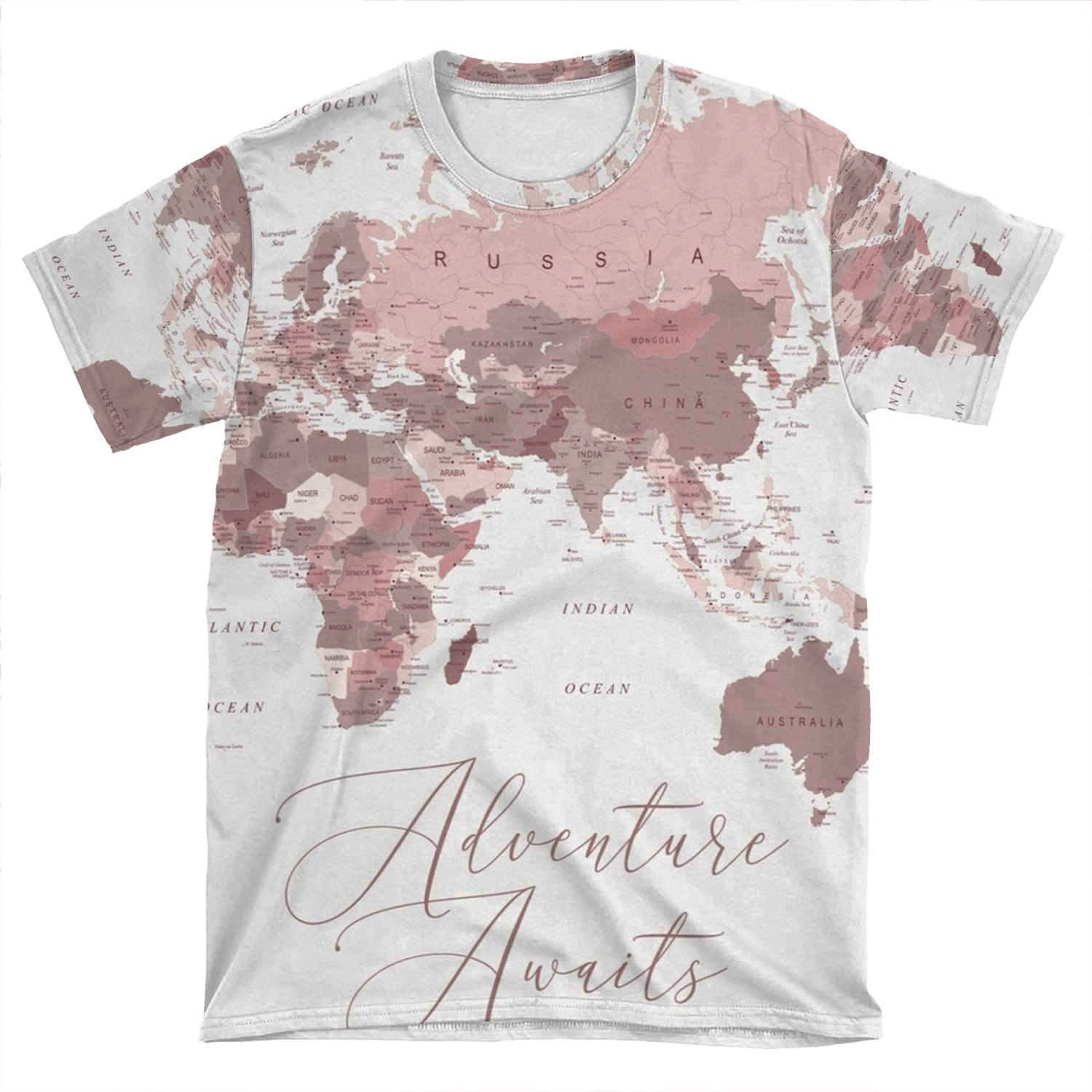 Pink World Map – Adventure Awaits AOP T-shirt Tee