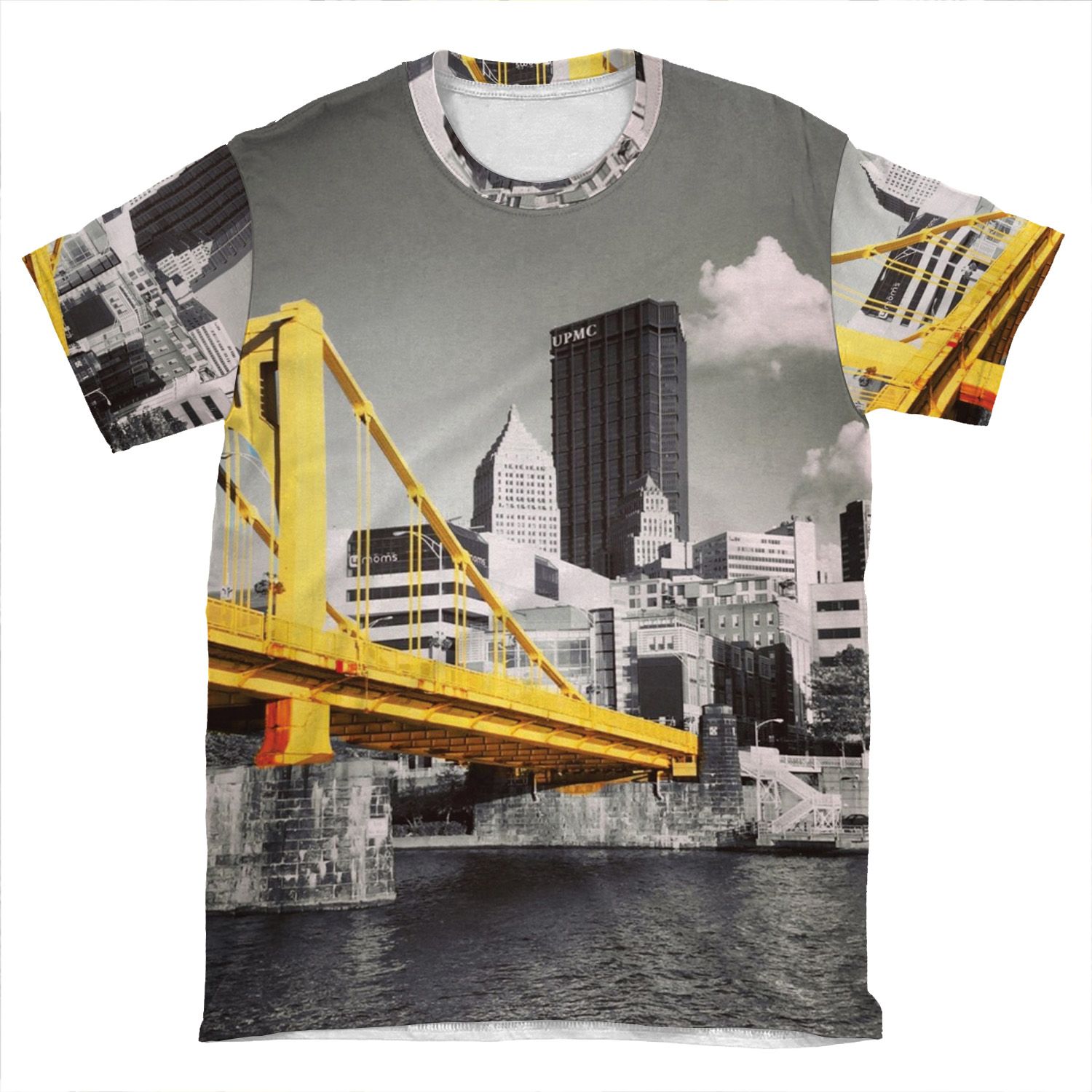 This Pittsburgh Skyline AOP T-shirt Tee created to be a versatile and stylish companion for all your casual appearances. With its uniquely textured, thick, microfiber-knit fabric, this t-shirt bears a premium, soft feel that remains lightweight and highly breathable – the perfect combo for a hot day or layering.