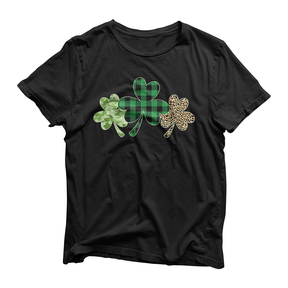 Plaid Shamrock Shirt Leopard Camouflage Fun St Patricks Day T-Shirt