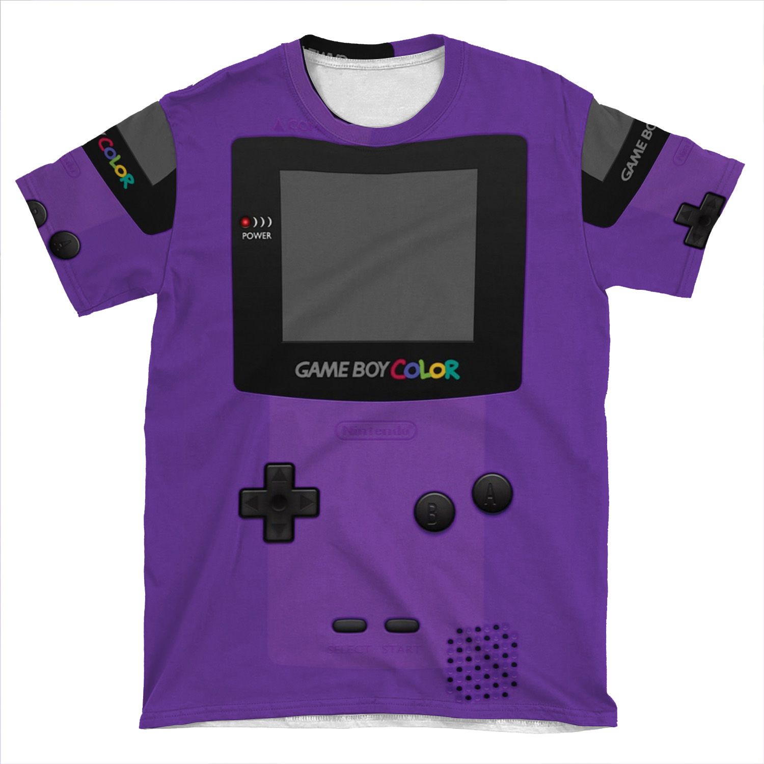 This Purple Nintendo Gameboy Color AOP T-shirt Tee created to be a versatile and stylish companion for all your casual appearances. With its uniquely textured, thick, microfiber-knit fabric, this t-shirt bears a premium, soft feel that remains lightweight and highly breathable – the perfect combo for a hot day or layering.